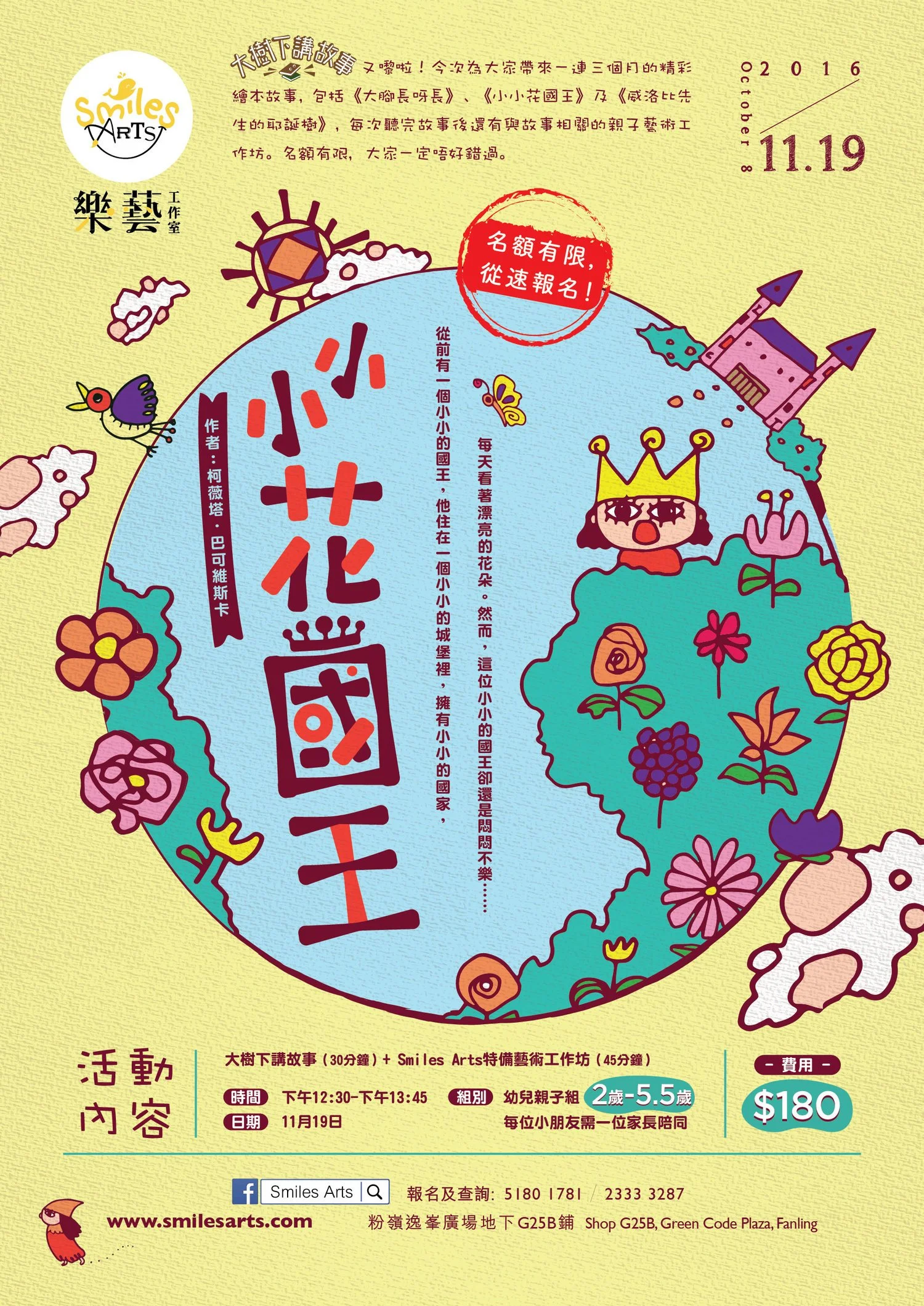 「大樹下講故事」為大家帶來一連三個月的精彩繪本故事,十月《大腳長呀長》之後,在十一及十二月還有《小小花國王》及《威洛比先生的耶誕樹》,每次聽完故事後還有與故事相關的親子藝術工作坊。